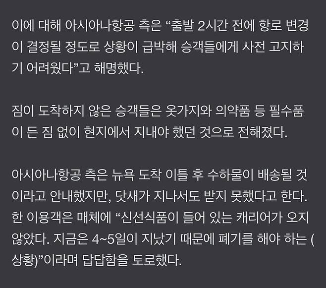 뉴욕 아시아나 카운터 뒤집어짐