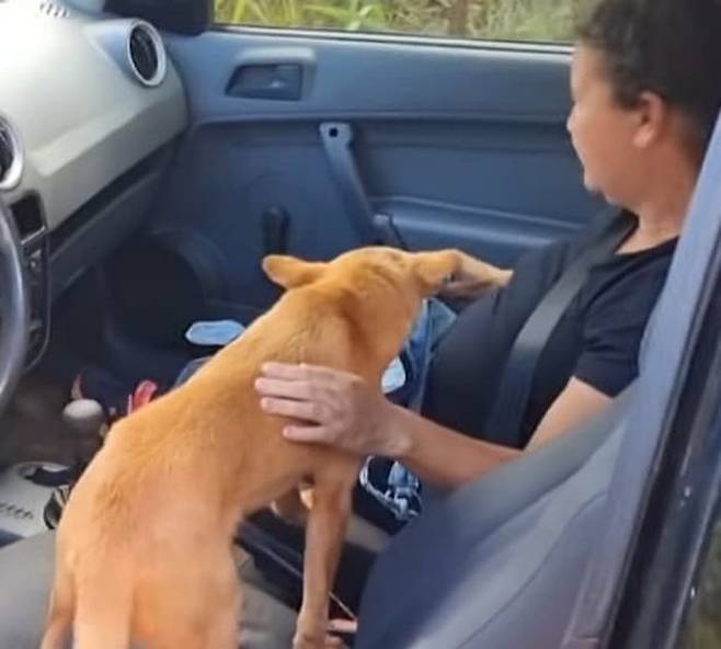 그는 서둘러 차를 세우고 문을 열었습니다. 그러자 차량을 뒤쫓던 강아지는 마치 기다렸다는 듯 다가와 꼬리를 흔들며 눈을 반짝였는데요.