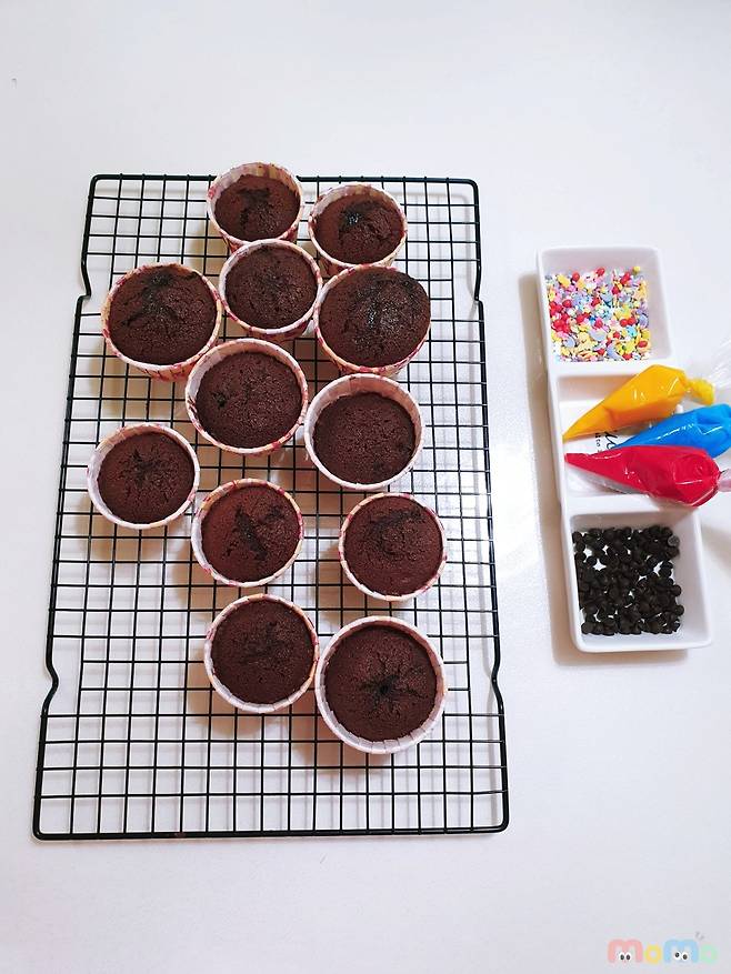 저는 인터넷에서 쌀가루머핀 키트를 구매해서 놀이했답니다.