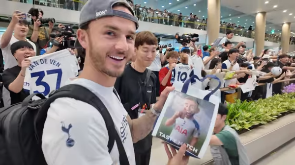 매디슨은 인천 국제 공항에 도착해 팬 서비스를 해주는 장면을 보여준 뒤"홍콩에서 한국으로 이동했는데, 아마 상상도 못할 거야. 공항에서 손흥민이 받는 반응은 말로 표현할 수 없을 정도였어. 수천 명이 기다리고 있었고, 한국 팬들은 존중과 겸손이 대단하지만 손흥민이 나타나면 완전히 광란이 되지. 그는 한국에서 왕 같은 존재야. 물론 우리도 환영을 받지만 대부분은 그를 보기 위해 온 거지"라며 절친 손흥민의 위상을 강조했다.