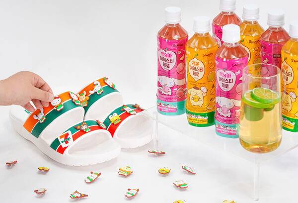 세븐일레븐은 신발 장식용품인 참 액세서리가 포함된 토이음료 2종을 출시했다. 세븐일레븐에서 최초로 ‘토이음료’라 명명해 선보이는 신규 상품은 음료 하단부 캡에 참 액세서리가 동봉됐다. 해당 상품은 산리오복숭아아이스티제로와 산리오레몬아이스티제로로 구성됐다. 인기 캐릭터 산리오캐릭터즈 IP와 콜라보해 음료 패키징에 캐릭터를 장식했다. 산리오캐릭터즈 참 액세서리 14종 중 하나가 랜덤하게 동봉돼 있다.