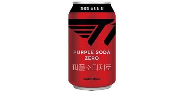 편의점 CU는 글로벌 게임 리그오브레전드의 정상급 프로게임단 T1과 콜라보한 상품 7종을 순차적으로 출시하며, 그중의 하나를 제로 슈거 음료로 준비했다. 음료 제품은 ‘퍼플소다제로’다. T1의 시그니처 컬러인 레드와 블랙을 활용한 제로 슈거 콘셉트의 탄산음료다. 맛은 포도맛이 주를 이룬다. 여타 콜라보 제품에 제공되는 T1 선수단 포토카드는 본 제품에는 제공되지 않는다. 가격은 1,500원이다.