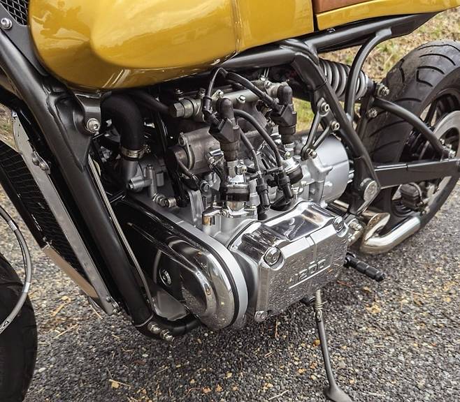 1,182㏄ 수랭식 엔진에는 전용 배기 시스템이 더해져 보다 강한 존재감을 드러낸다. 휠은 새틴 블랙으로 마감하고, 신코 타이어를 장착해 클래식하면서도 역동적인 분위기를 연출했다. 차체 전체는 금색으로 도장돼 ‘골드윙’이라는 이름에 걸맞은 품격을 더했다. 1980년대 대형 투어러의 전통에 현대적인 감각을 더한 이번 커스텀 모델은, 무게를 줄이고 감성을 더한 이상적인 재해석이라는 평가를 받고 있다.