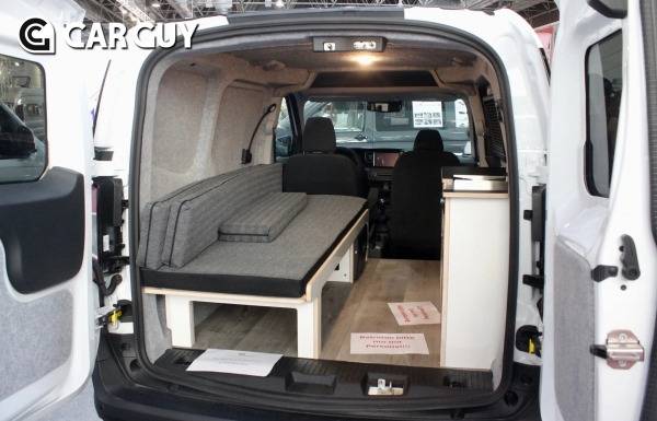 이와 더불어 앞좌석 등받이까지 곧게 뻗은 2인용 플로어 플랜을 갖추고 있다. 운전석 쪽에는 세로로 길게 뻗은 소파 벤치를 장착했다. 이는 주방 블록으로 확장해 아늑한 더블 침대로 변신한다.