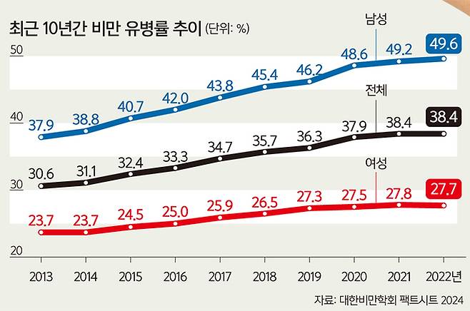 비만인구 증가세… 성인男 절반 ‘배불뚝’