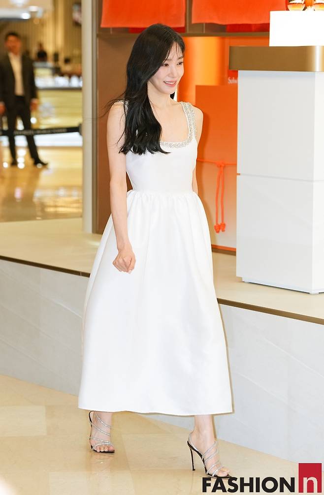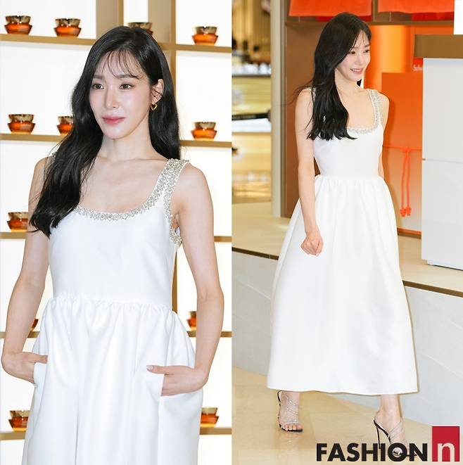 그룹 소녀시대의 티파니영이 러블리한 심쿵 미소에 스퀘어넥 화이트 원피스 나들이룩으로 잠실을 저격했다.