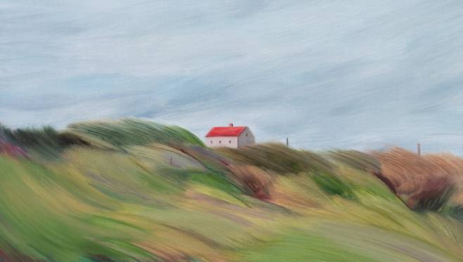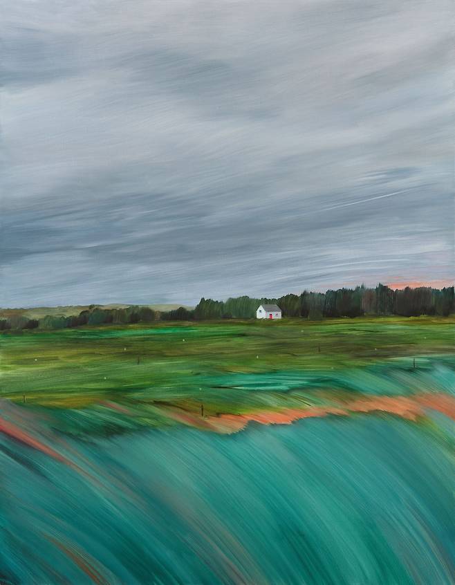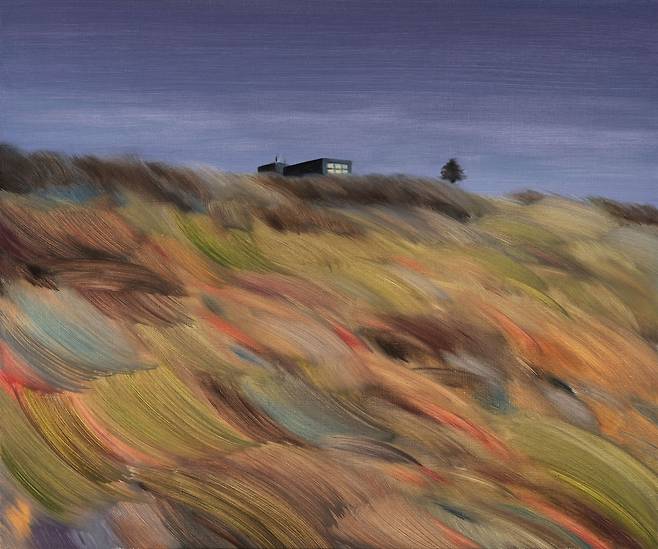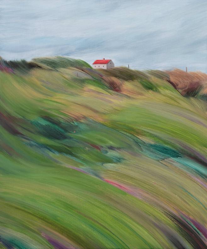 붓질은 작업을 하는 행위이자 나의 내면에서 일어나는 소리에 대한 기록으로 남는다. 그리고 계속해서 부는 바람에 흔들리는 식물들 사이에서 홀로 굳건히 서 있는 집은 모든 과정과 감정의 종착지로서 작용한다.