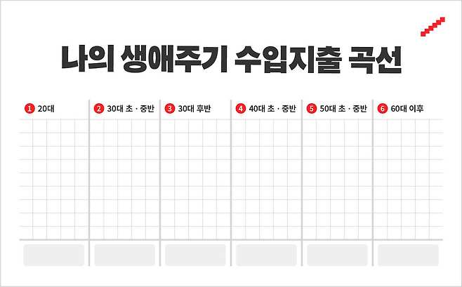 경제적 자유는 결과가 아닌 과정이에요. 원하는 목표를 향해가는 여정도 아주 중요합니다. 아래 이미지를 출력해, 부들부들부드라미 님의 생애주기 수입지출 곡선을 그려 보세요.