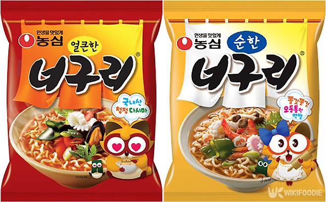 1982년 출시된 농심의 ‘너구리’는 굵은 면발과 해물 맛이 특징이다. 이름은 일본식 우동인 ‘다누키 우동’에서 따왔다.