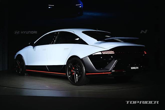 외관은 단순히 멋있다는 말로는 부족하다. 대형 리어 스포일러, 공기역학적 범퍼 설계, 광폭 전용 타이어, 20인치 단조 휠, 신규 컬러 ‘퍼포먼스 블루 펄’까지 전기차답지 않게 도전적인 인상을 준다. 한 마디로 ‘서킷에서 태어난 차’라는 느낌이 온몸에서 흘러나온다.