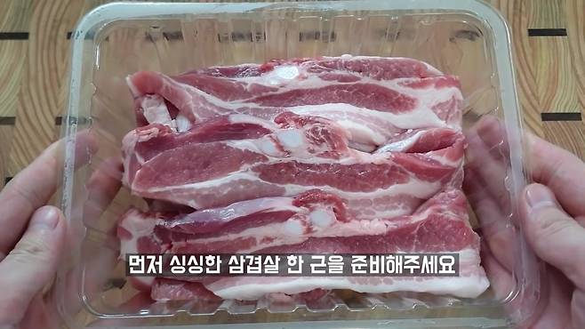 1. 삼겹살 준비하기 싱싱한 삼겹살 1근을 준비합니다. 대패 삼겹살도 사용 가능합니다.