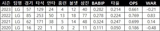 삼진이 줄고, 출루가 늘었다. 장타는 그대로다.
