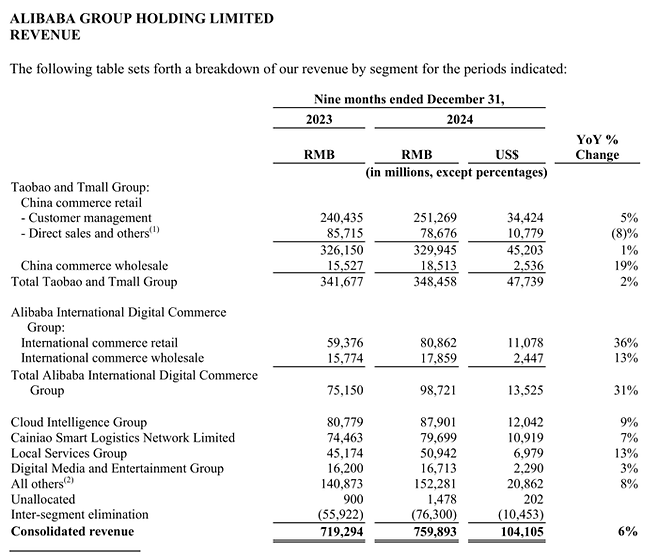 지난 9개월(2024.4.1~2024.12.31) 간 알리바바의 매출액은 1041억 달러, 즉 한화로 150조원에 달합니다.