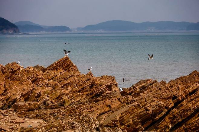 선재도에서 차로 10분 거리에 있는 노가리해변 끝자락에서 약 5분 정도 걸어가면 거대한 암산이 나타나는데, 겹겹이 층을 이룬 퇴적암이 절벽을 이룬 모습이 장관입니다.