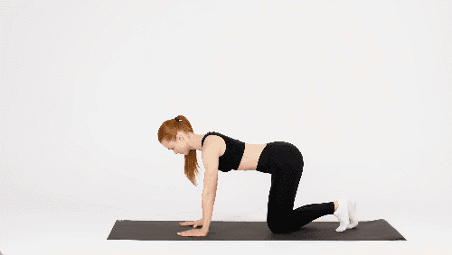 매트 위에서 무릎과 손바닥을 바닥에 대고 네발기기 자세를 만듭니다. 오른팔을 앞으로, 왼쪽 다리를 뒤로 뻗으며 몸통을 곧게 유지합니다. 자세를 유지한 후 원래 자세로 돌아옵니다. 이번에는 왼팔과 오른쪽 다리를 뻗고 같은 방식으로 반복합니다.