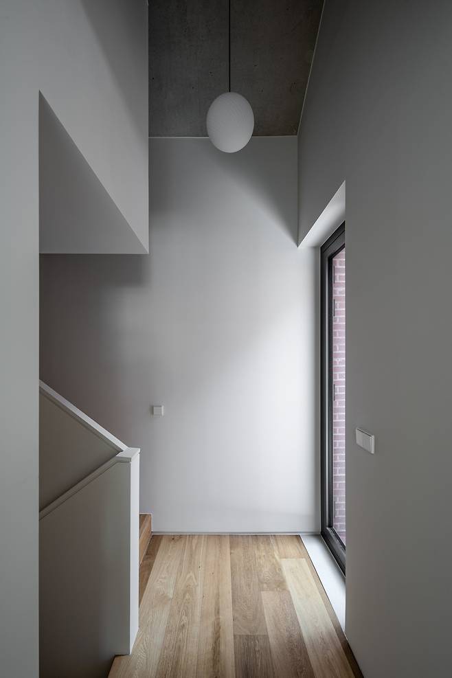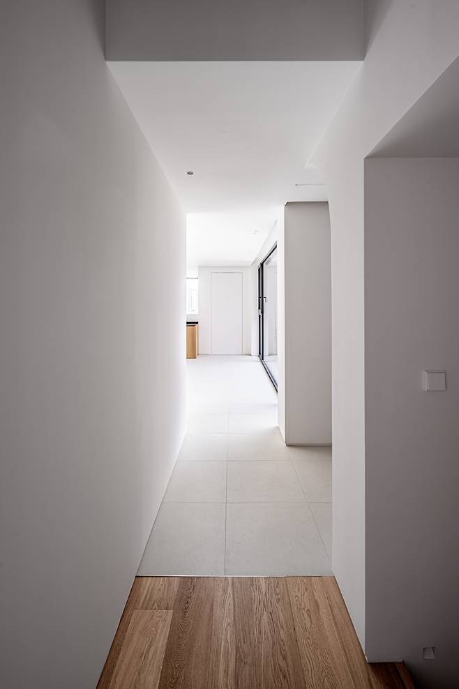 우리는 사방이 건물로 막힌 닫힌 대지의 맥락을 해석하고 건축주의 요구를 충족시키는 집을 만들고자 하였다. 담장(Wall)은 건축주의 사생활을 보호하면서도 주변을 압도하지 않도록 배려한 건축 언어였다. 벽 너머 도시 맥락 속에서는 이웃의 프라이버시 보호를 위한 장치로, 벽 안의 건축적 스케일 속에서는 두 자녀의 프라이버시 보호와 공간의 깊이감을 만들어내는 장치로 작동하는 담장. 결국 담장은 우리가 만든 건축적인 기준이자, 벽 너머에 존재하는 서로 다른 단위 맥락에서 각각의 요구를 읽고 그에 대응하는 건축적 제스처인 것이다.