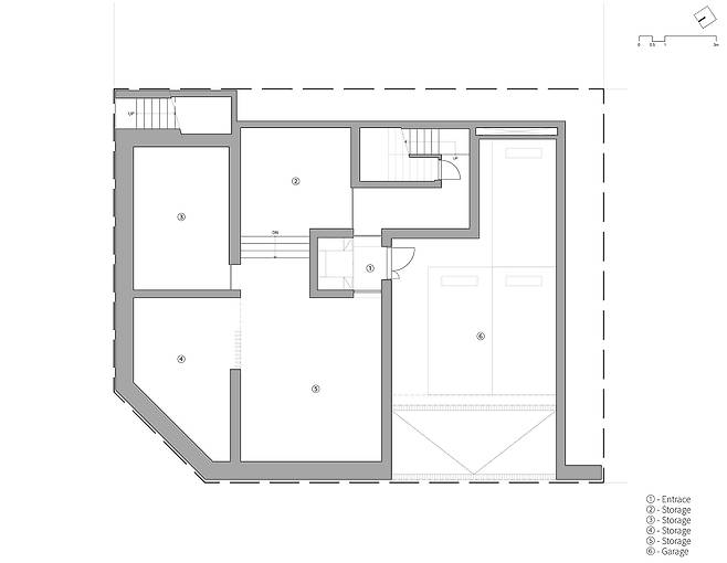 지하와 1층에 위치하는 아랫담은 1차적으로 창고라는 실용적인 기능을 수행하는 동시에 앞집의 시야를 막는다. 또한, 시각적으로 사면이 막힌 건물에서 출입 동선을 유도하는 가이드라인이 되어준다.