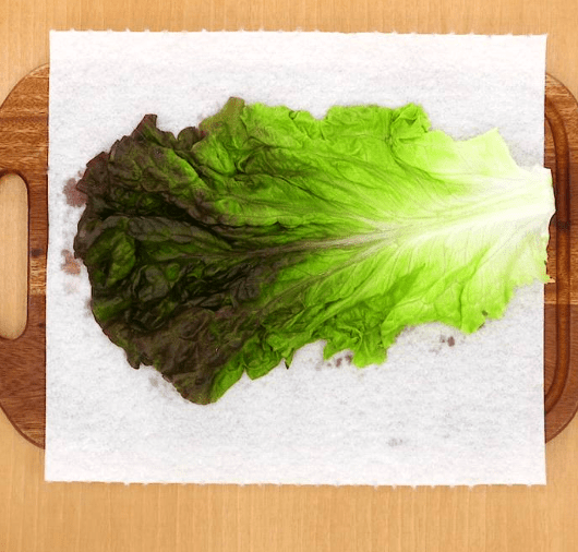 키친타월은 과도한 습기를 잡아주면서 상추의 숨이 죽는 것도 막아 준다. 이 과정을 거친 상추는 기존보다 훨씬 오래 신선함을 유지할 수 있다.