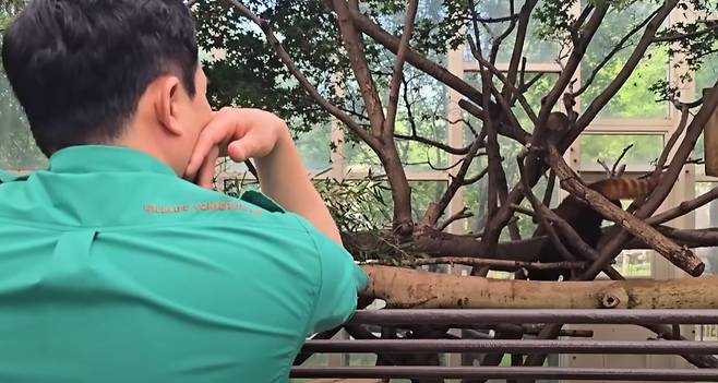 주키퍼들은 레아가 적응하지 못하자 걱정스러운 눈빛으로 레아를 바라보기 시작했는데요. 이때 레아가 놀라운 변화를 보였습니다. 높은 나무 위에서 거리를 두고 꼼짝도 하지 않던 레아가 바로 내려오기 시작한 것인데요.