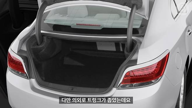 다만 의외로 트렁크가 좁았는데요. 내부를 부직포로 꼼꼼하게 덧대 고급스럽게 마감한 것은 좋았고 엄밀히 따지면 용량 자체는 충분했습니다만, 공간 구성이 애매해 골프백이 가로로 실리지 않는 등 실제 사용할 때는 동급 경쟁차들에 비해 불편했습니다. 이 급의 차량에서는 보기 드문 옵션인 6:4 분할 폴딩 기능을 제공한다는 점이 그나마 위안이었지만, 이러면 뒷좌석에 한 분이 못 타잖아요.
