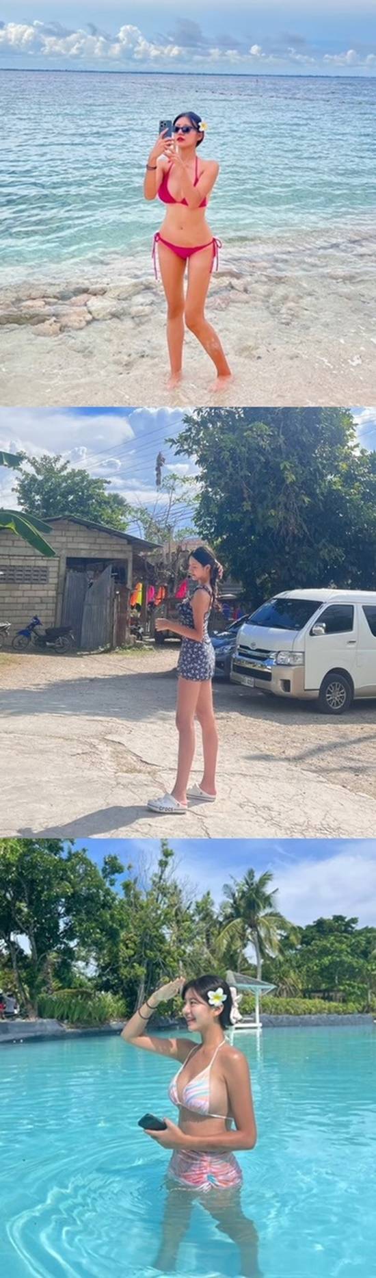 공개된 사진 속에서 김이서는 여유로운 모습으로 물 속에서 시원한 여름 휴가를 즐기고 있다.