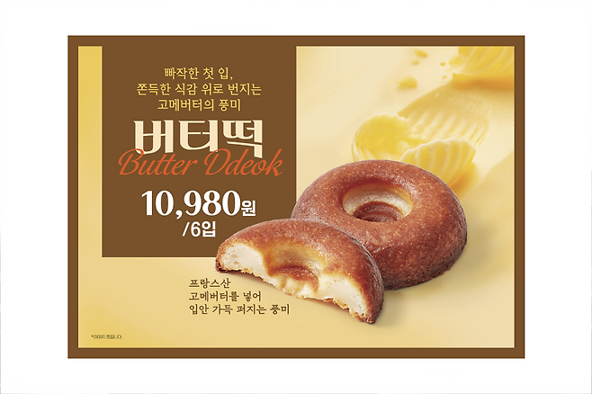 신세계푸드가 선보인 버터떡은 겉은 빠작하고 속은 쫀득한 ‘겉빠손쪽’ 식감에 프랑스산 고메버터를 사용해 깊은 풍미까지 살린 것이 특징이다. 6입 기준 1만 980원으로, 개당 2천원 미만의 합리적인 가격으로 즐길 수 있다.
