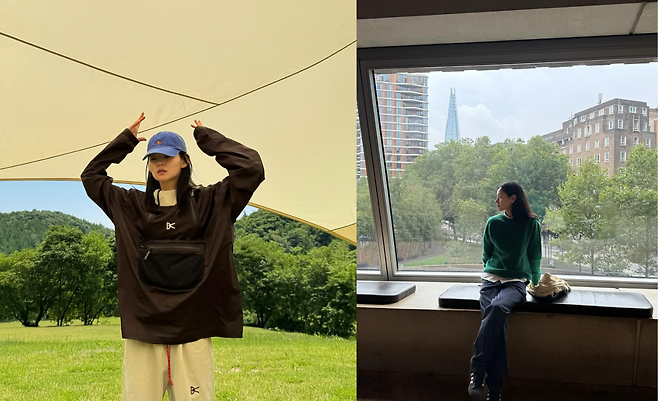 선명한 초록색 니트가 시선을 사로잡는다. 군더더기 없는 라운드 넥 니트 안에 화이트 셔츠를 레이어드하여 단정하면서도 클래식한 멋을 살렸다. 하의로는 와이드 슬랙스를 선택해 전체적인 실루엣의 균형을 맞췄으며, 활동성이 좋은 스니커즈를 매치해 꾸민 듯 안 꾸민 듯한 '꾸안꾸' 패션의 정석을 보여준다.