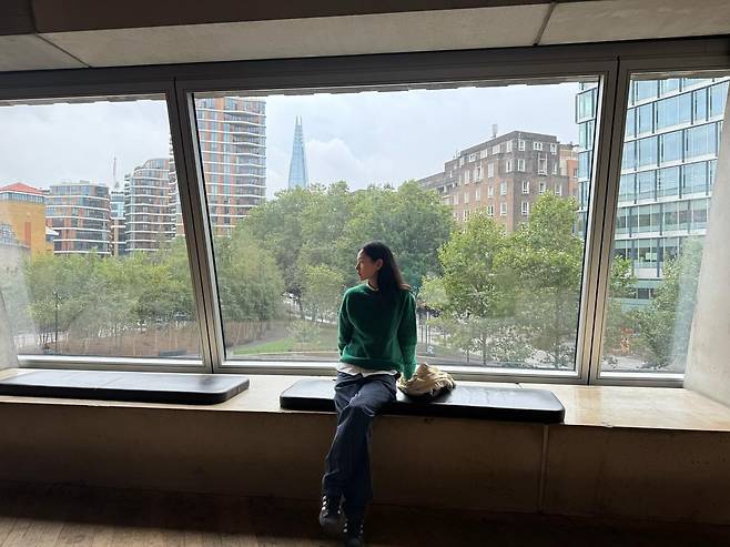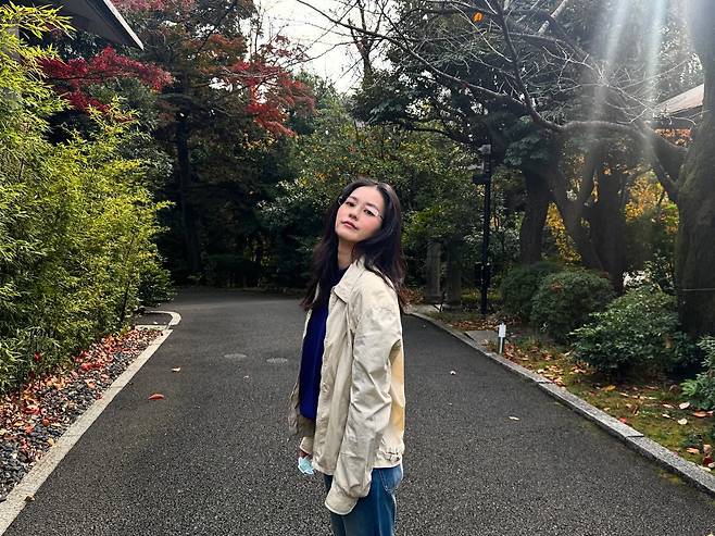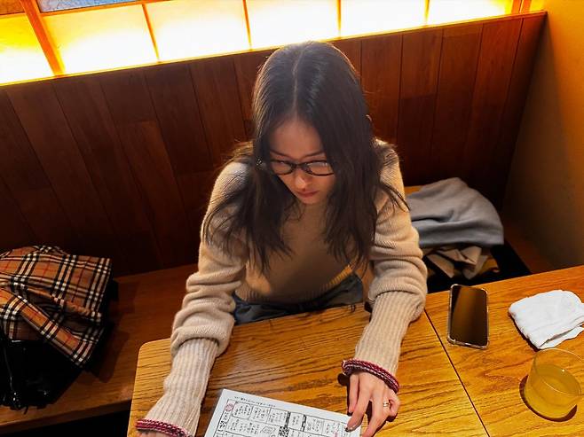 포근한 질감이 느껴지는 골지 니트를 착용해 따뜻하고 부드러운 이미지를 강조했다. 목 위로 살짝 올라오는 넥 라인과 손등을 덮는 소매 기장이 여리여리한 느낌을 준다. 앞선 스타일링과 마찬가지로 무테안경을 착용해 지적인 분위기를 풍기며, 전체적으로 차분한 톤 온 톤 코디를 통해 우아하면서도 편안한 가을 감성을 완성했다.