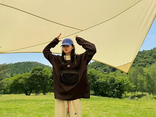 자연스러운 멋이 돋보이는 고프코어 룩이다. 짙은 초콜릿 브라운 컬러의 아노락은 넉넉한 핏과 전면의 캥거루 포켓 디테일이 더해져 실용적이면서도 활동적인 분위기를 자아낸다. 여기에 톤 다운된 베이지 컬러의 조거 팬츠를 매치하여 편안함을 강조했고, 로고가 새겨진 블루 컬러의 볼캡을 착용해 자칫 심심할 수 있는 컬러 조합에 생동감 넘치는 포인트를 주었다.