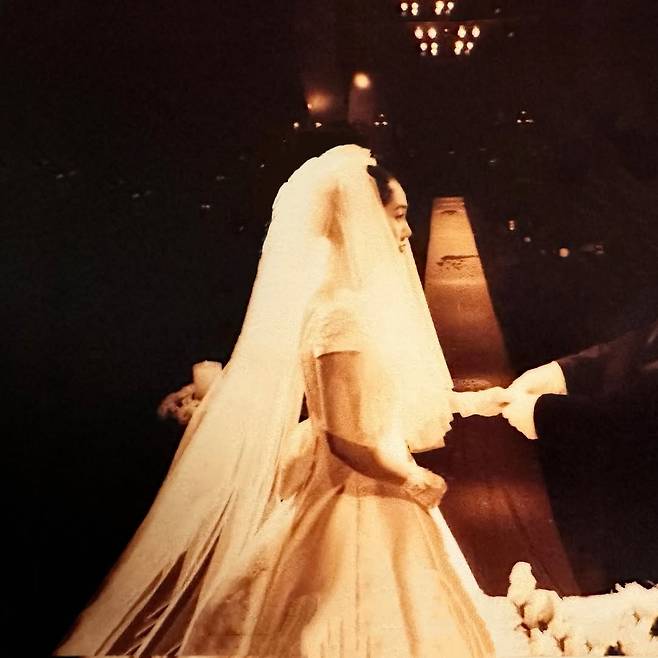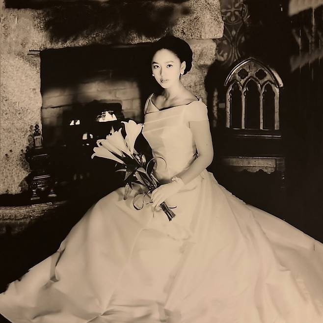 공개된 사진 속에는 2001년 박주미의 결혼식 모습이 담겨 있다. 고전적인 아름다움이 돋보이는 순백의 웨딩드레스, 군더더기 없는 실루엣,