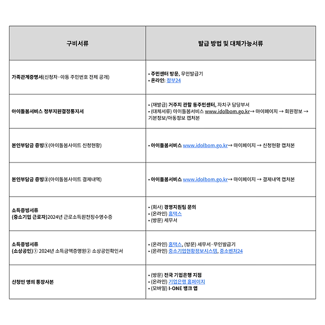 - 이용조건: 최근 1년 이내 정부의 아이돌봄서비스를 이용했으며, 본인부담금이 발생한 경우가 대상