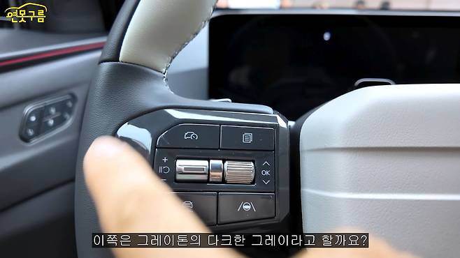 스티어링 휠도 자세히 보면 그레이톤의 다크한 느낌이 인상적입니다. 이제는 많이 보아서 익숙한 새로운 스티어링 휠 디자인이죠. 사용하면서 가장 편리하다고 느꼈던 점은 바로 드라이브 모드 셀렉터의 위치입니다. 운전 중 조작하기에 정말 좋은 위치에 있어 매우 만족스럽습니다.