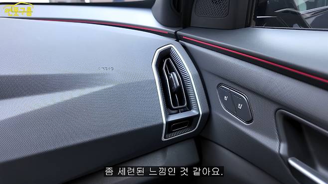 EV5의 실내 디자인 중 눈에 띄는 부분은 바로 대시보드 쪽입니다. 마치 칼로 툭툭 잘라낸 듯한 날카롭고 대비되는 디자인이 인상적입니다. EV3나 EV4와는 확연히 다른, EV5만의 개성을 보여주는 부분이라고 할 수 있겠습니다. 이런 부분에서 패션 브랜드의 패턴을 보는 것 같은 느낌도 받게 됩니다.