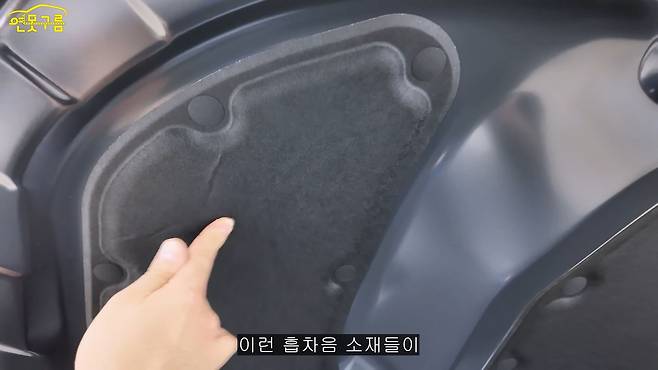 프렁크 위쪽에는 흡차음 소재가 촘촘하게 잘 정리되어 있습니다. 이런 세심한 마감은 사용할수록 만족도가 높아지는 요소라고 할 수 있습니다. 사소하지만 운전자의 편의를 고려한 설계가 돋보이는 부분이죠.