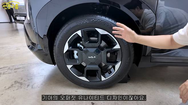 그렇다면 GT-line은 어떤 휠 디자인을 가지고 있을까요? GT-line의 휠은 네모반듯한 패턴이 인상적입니다. 기아의 오퍼짓 유나이티드 디자인 철학이 잘 반영된 모습이죠. 노멀과 동일한 235 55R 19인치 타이어가 적용되더라도 디자인에서 확연한 차이를 보입니다.