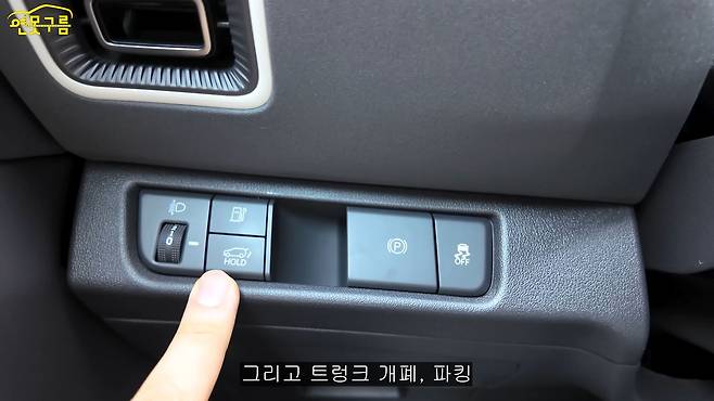 이제는 기아의 UI가 안정적으로 자리 잡은 것 같습니다. 운전석 하단에는 충전 포트 개폐, 트렁크 개폐, 파킹, 그리고 자세 제어 장치를 끌 수 있는 기능들이 일목요연하게 포함되어 있습니다. 자주 사용하는 기능들을 손쉽게 조작할 수 있도록 구성되어 있습니다.