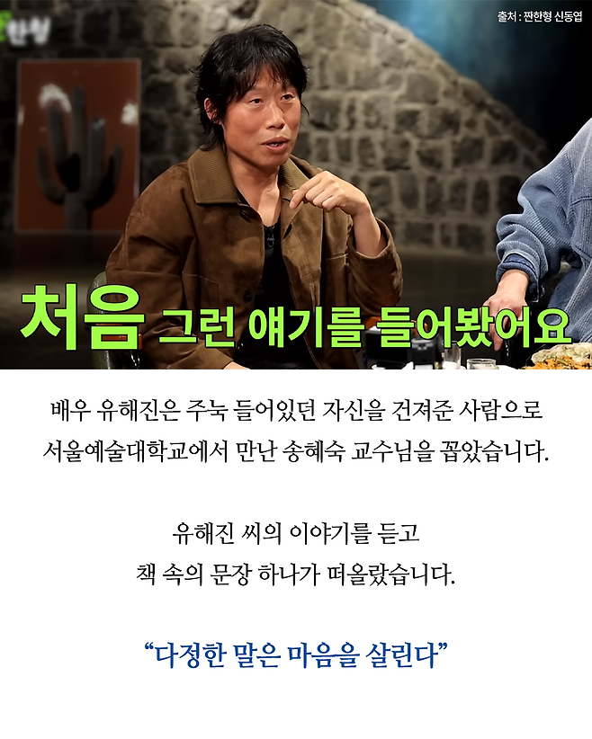 못 생겼다고 주눅 든 유해진을 일으켜 세운 은사님의 '한마디'