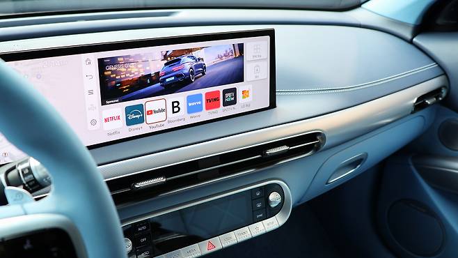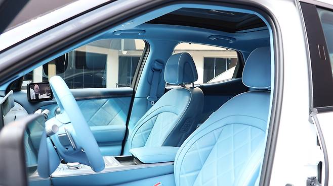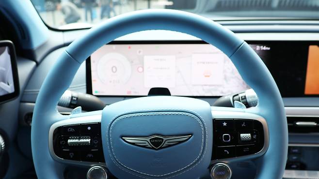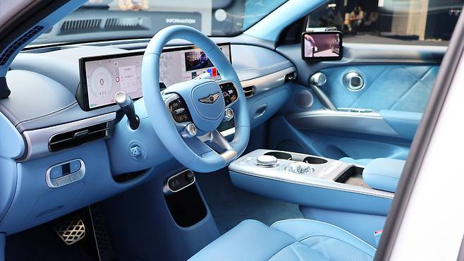 실내 디자인 역시 부분적인 변화를 거쳤다. 기존 와이드 스크린은 27인치 통합형 OLED 스크린으로 변경되었고, 새로운 인포테인먼트 테마가 도입된다. 그리고 스티어링 휠이 제네시스 스포츠 트림에 제공되던 3스포크 타입으로 변경되었다. 일부 마감 개선및 돌비 애트모스, 디지털 센터 미러 등등 편의장비를 보강한다. 대시보드는 기존 선반형을 유지하며, 기어레버는 로터리 타입이다. 센터 콘솔에 위치한 크리스탈 스피어가 전원 작동시 회전한다. 도어트림과 시트를 장식하는 퀼팅 패턴이 특히나 고급스러워 보인다.