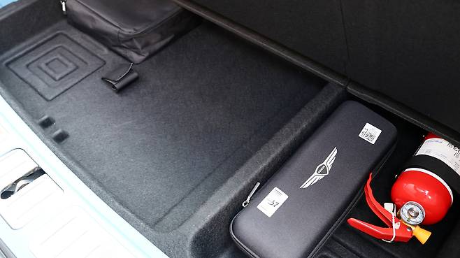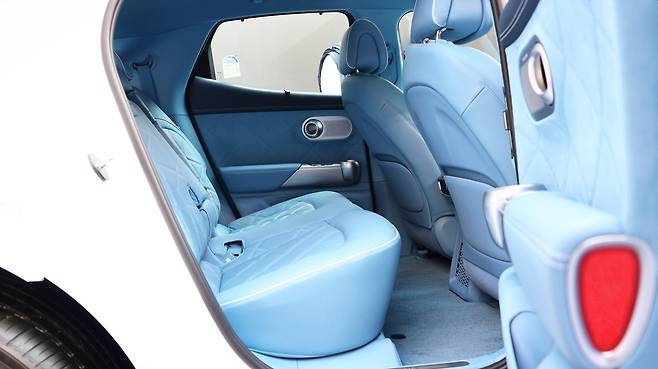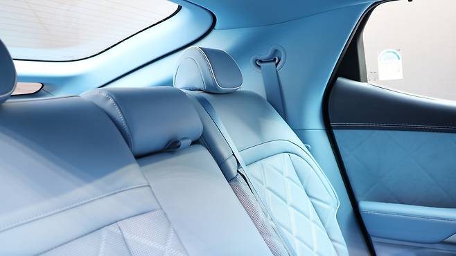 뒷좌석 공간이다. E-GMP 플랫폼 기반 전기자동차 답게, 센터터널이 없는 평탄한 바닥변이 개방감을 더한다. 레그룸 면적도 체급에 비해 여유로운 편, 쿠페 스타일이지만 실제 헤드룸의 손실도 없어 보인다. 편의 기능으로는 실내 V2L, 수동식 롤러 블라인드와 비전루프, 에어벤트, 시트 열선및 암레스트 정도가 있다. 컵홀더는 도어트림에 구성되어 있기 때문에 사용성이 더 나아진다. 트렁크 공간은 낮고 깊게 구현되어 있다. 역시 바닥면은 평탄하게 마감되었다. 러기지 스크린과 트렁크 매트는 실내 트리밍 색상과 다른 검은색으로 구성된다.