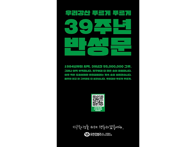 선명한 녹색 바탕에 굵은 검정 글씨. 제목은 단순했어요. ‘우리강산 푸르게 푸르게 39주년 반성문’.