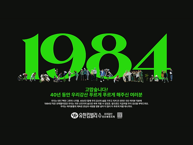 유한킴벌리의 ‘우리강산 푸르게 푸르게’ 캠페인이 40주년을 맞았습니다. 1984년부터 숲의 가치를 알려 온, 국내 최장수 숲·환경 공익 캠페인입니다.