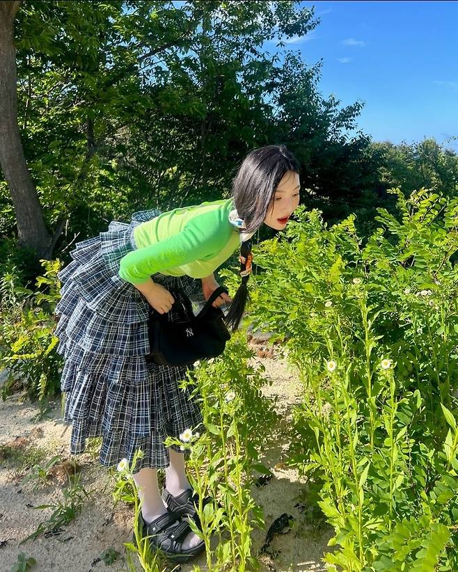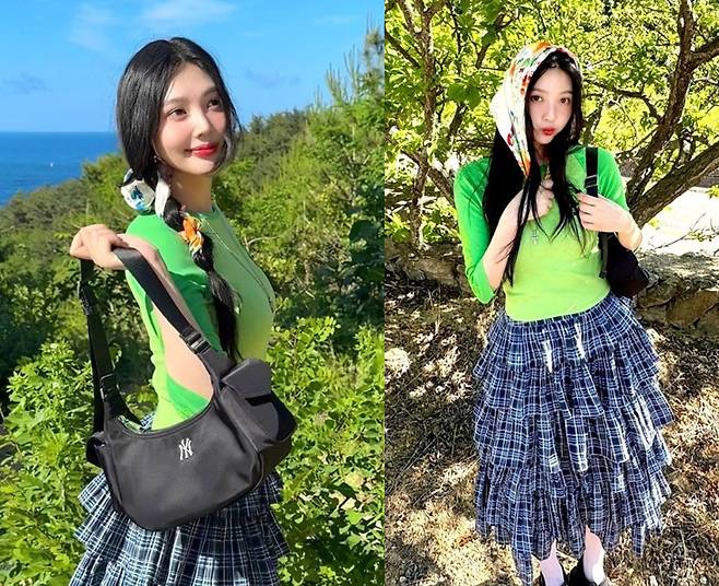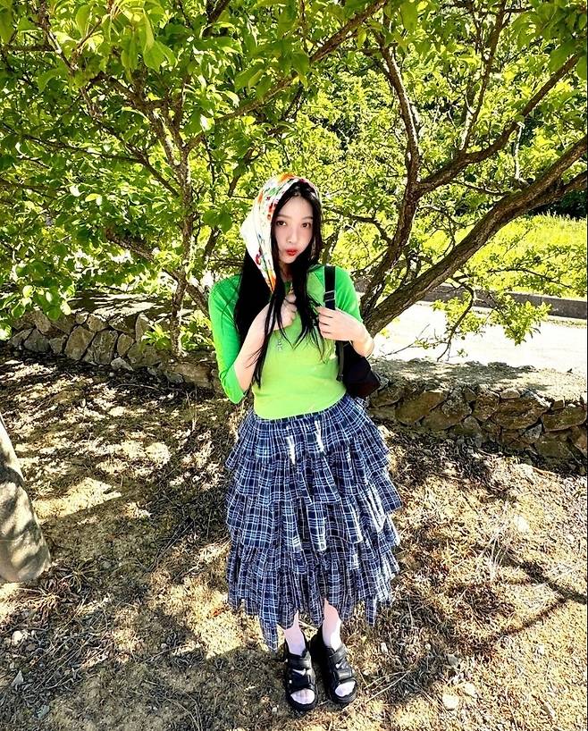 레드벨벳 조이가 2일 인스타그램에 "💚초록이 좋아요💚"라는 글과 함께 여러 장의 사진을 게재했습니다.