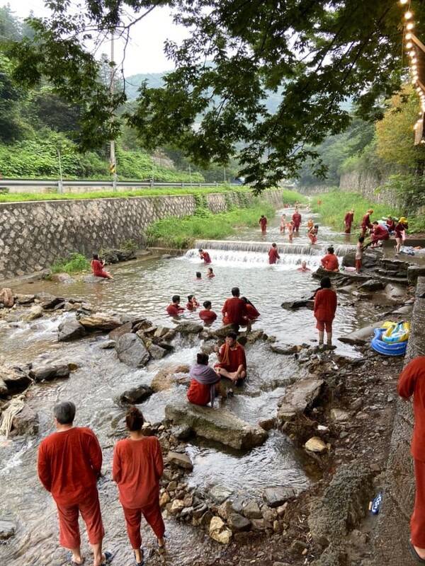 뜨거운 숯가마에서 땀을 한차례 빼냈다면, 곧바로 찜질방과 연결된 계곡으로 향해 시원하게 계곡에서의 물놀이를 즐기면 됩니다. 물놀이를 마친 뒤 찾아온 허기짐은 찜질방 내 식당을 이용해 달랠 수 있는데요. 야외 공용화로가 있어 마트에서 식재료와 식기를 구입해가면 무료로 고기를 구워먹을 수있습니다.