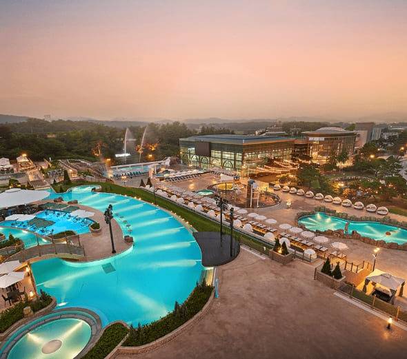 이천 테르메덴은 실내외 모든 수영장과 욕탕에 100% 천연 온천수가 공급되는 온천 시설입니다. 온천임에도 다른 대형 워터파크에 견줄 수 있을만큼 다양한 어트랙션과 놀거리가 마련되어 있는데요. 주변이 모두 산으로 둘러싸여있어 자연의 정취를 느끼며 물놀이와 찜질을 동시에 즐기기 좋습니다.