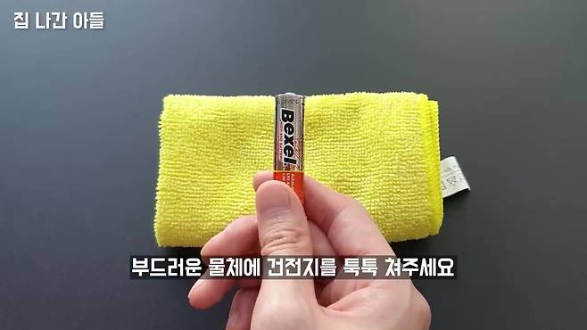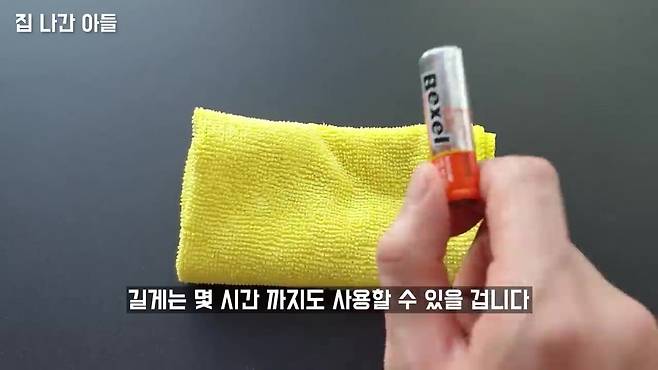 건전지를 천이나 옷에 문질러 열에너지를 주면, 남은 전기가 살아납니다.