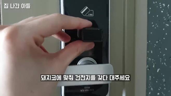 방전으로 도어락이 안 열릴 땐, 남은 건전지를 ‘돼지코 접점’에 대면 일시 충전 가능!