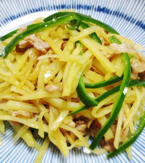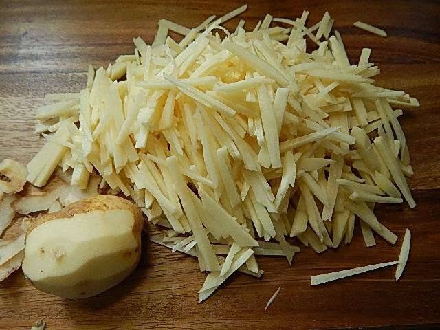이 감자를 채 썰어 다량의 식용유에 볶는 과정에서 감자의 전분 성분이 기름을 스펀지처럼 흡수하게 됩니다.