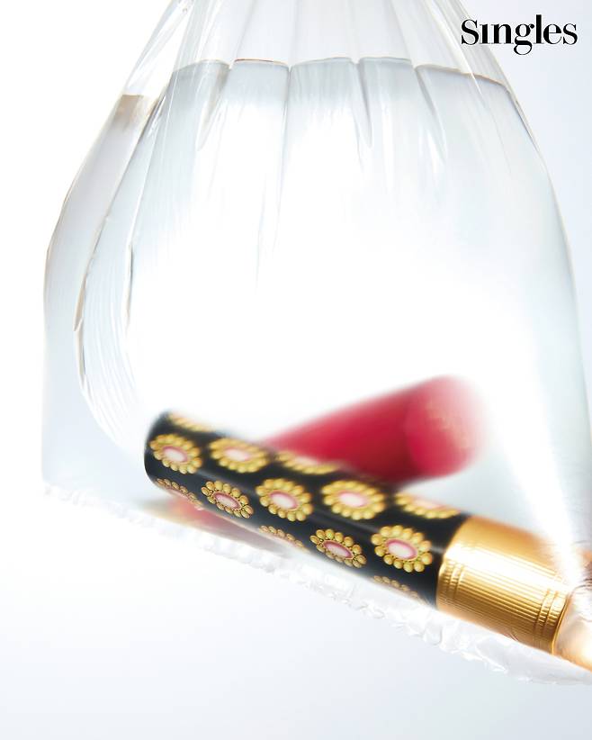 선명한 컬러가 돋보이며, 피오니 오일과 블랙 로즈가 입술에 보습감을 준다. 루즈 드 보떼 브리앙 217, 509 1.8g 6만3000원, Gucci Beauty.