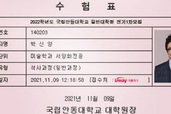 2021년 박신양은 2022학년도 국립안동대학교 일반대학원 1차 모집 수험표를 공개했고 미술학과 서양화 전공에 합격 후 54세에 대학원 생활을 시작했다. 지난 10년간 130여 점의 작품을 그려온 '화가' 박신양은 최근 '박신양 : 제4의 벽'이라는 전시를 진행했다.