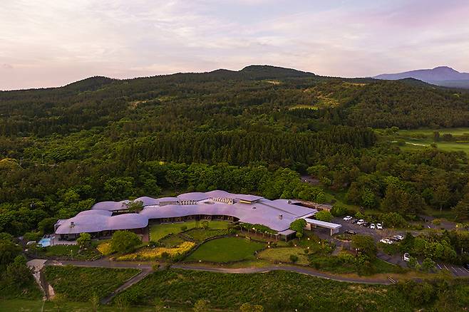 포도 호텔은 제주도의 오름과 전통 초가집을 모티브로 한 설계로 주목받고 있습니다. 건축가는 재일교포 세계적인 건축가 이타미 준으로, 주변 자연환경과 조화롭게 설계된 이 호텔은 2013년에 ‘아름다운 제주 7대 건축물’로 선정되었으며, 2020년에는 월드 골프 어워드에서 한국 최고의 골프 리조트로 평가받았습니다. 유려한 지붕 곡선이 포도를 연상시키며, 하늘에서 보면 포도가 있는 듯한 모양으로 지어진 것이 특징입니다.